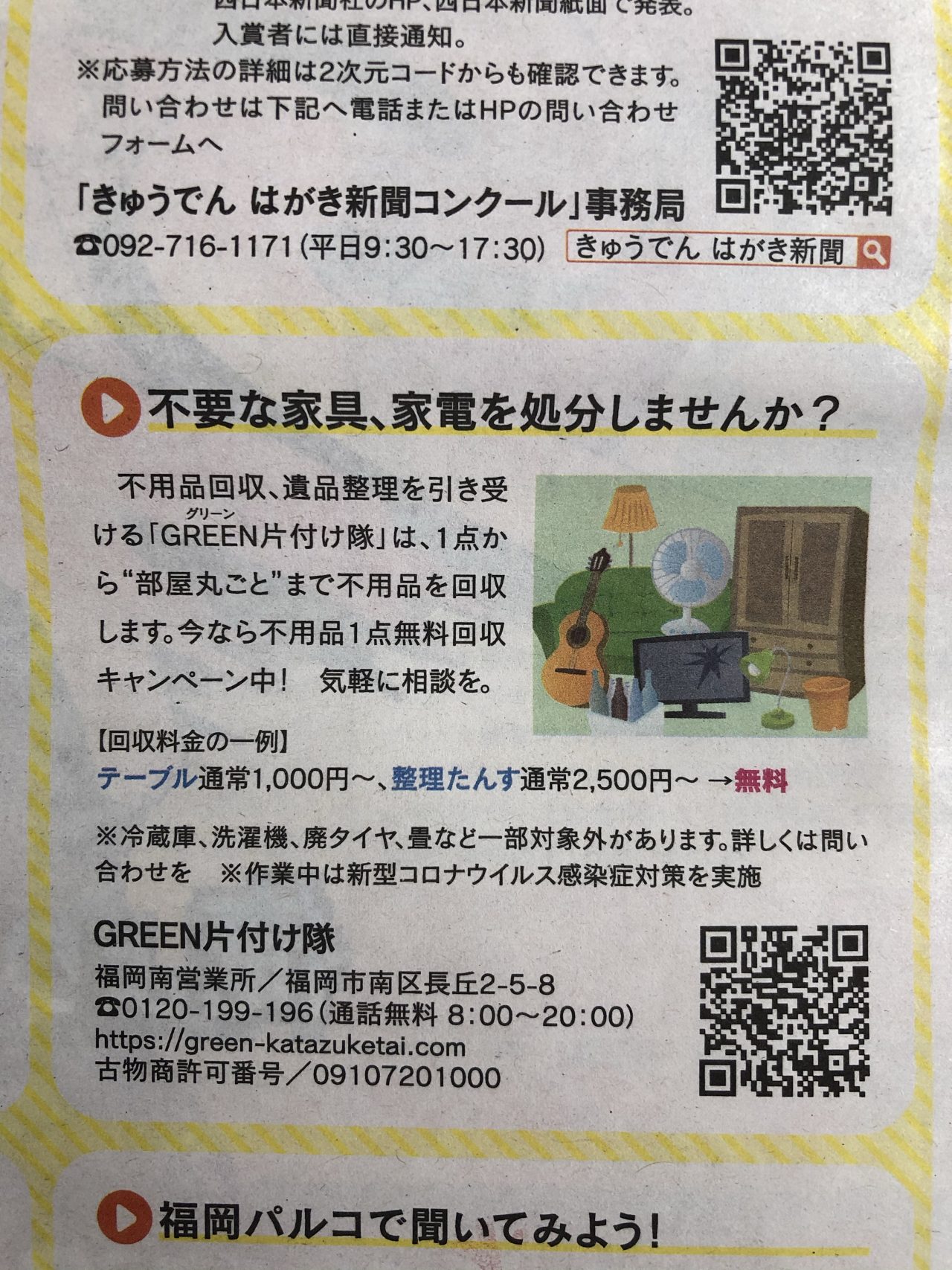 福岡 不用品 無料回収/福岡 不要品 無料回収/福岡 粗大ゴミ 無料回収/福岡 不用品 買取/福岡 不要品 買取/福岡 粗大ゴミ 買取/遺品整理 福岡/福岡 遺品整理/エアコン無料回収/グリーン片付け隊/GREEN片付け隊/GREEN/片付け隊/家具販売/リサイクル 福岡/リユース 福岡/見積無料/即日対応/模様替え/家具移動/清掃/ハウスクリーニング/断捨離/ミニマリスト